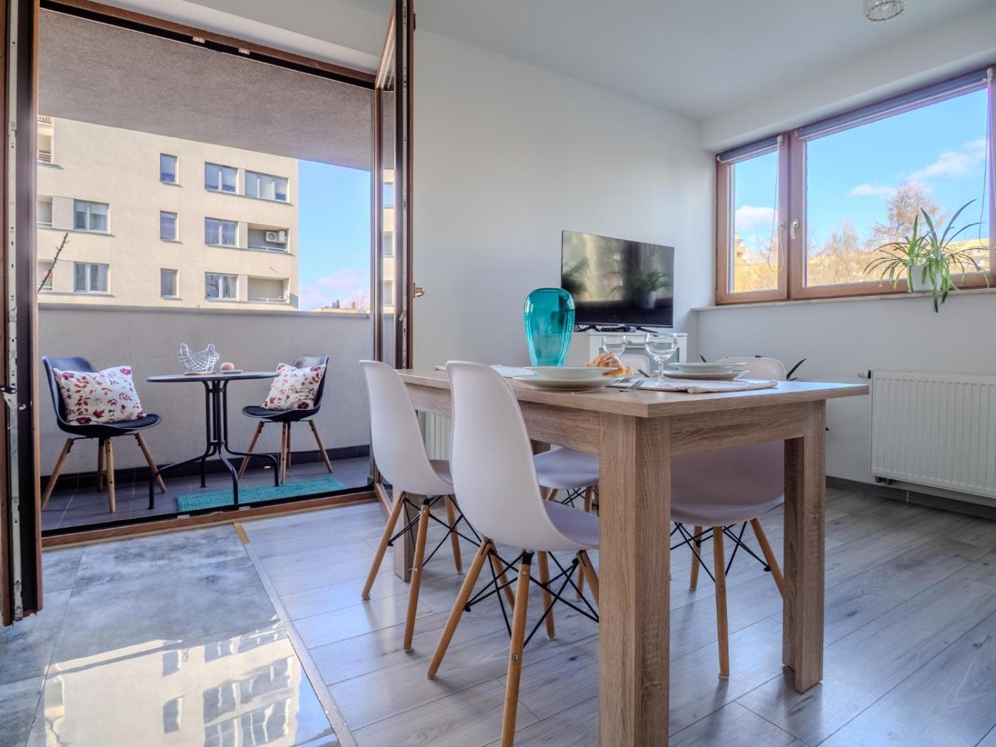 W apartamencie do dyspozycji gości przygotowano balkon, sypialnię (1), salon oraz kuchnię z doskonałym wyposażeniem, w tym lodówką i piekarnikiem. W apartamencie zapewniono ręczniki i pościel.