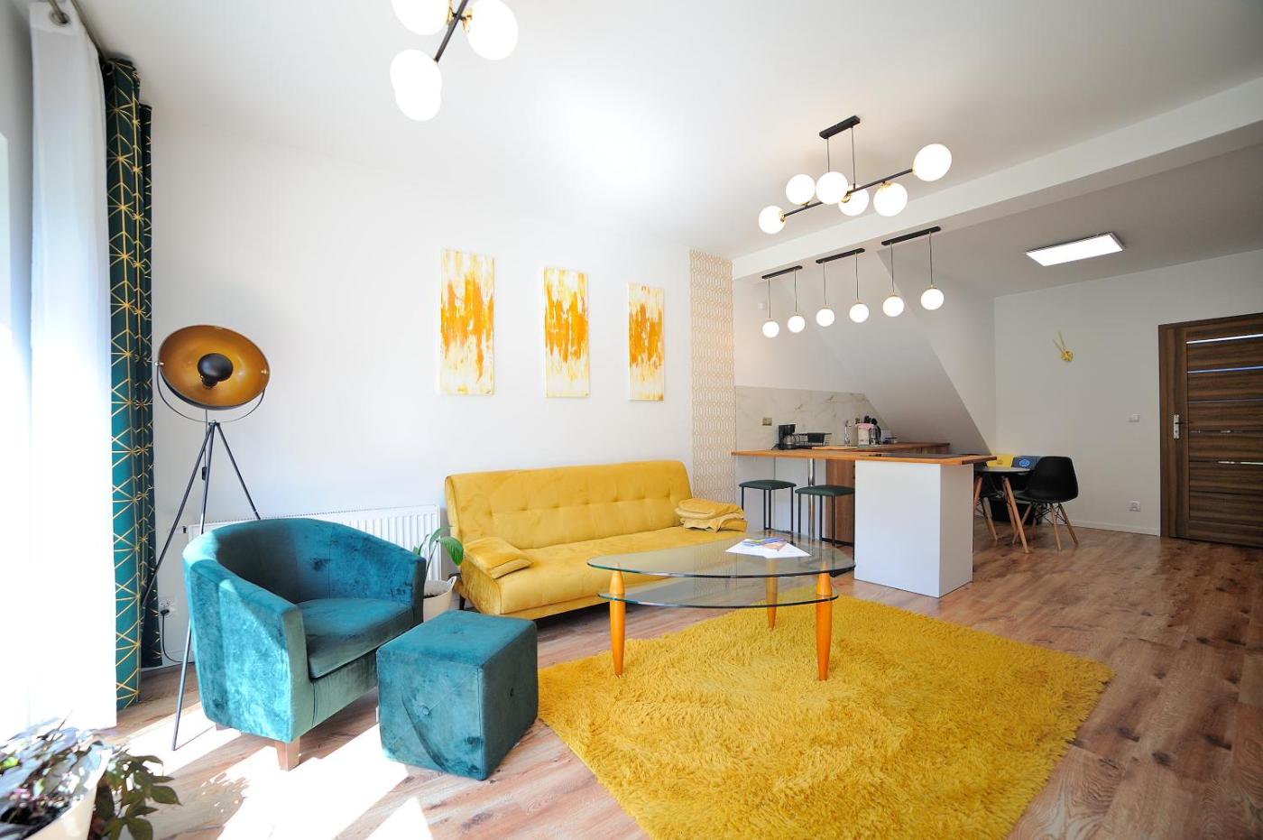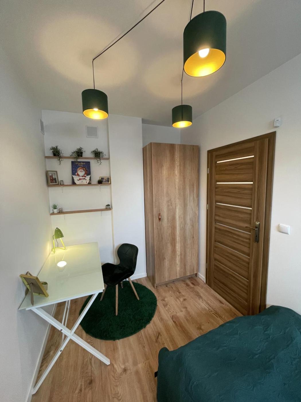 Apartament – parter. Boasting a private entrance, this apartment comes with 1 living room, 2 separate bedrooms and 1 bathroom with a shower and a hairdryer. Guests can make meals in the kitchen that features a stovetop, a refrigerator, kitchenware and an oven. The apartment features a washing machine, a tea and coffee maker, a seating area, a flat-screen TV with streaming services, as well as garden views. The unit has 3 beds. Apartament - 4 osobowy. Powierzchnia pokoju ok.: 55 mkw. ;